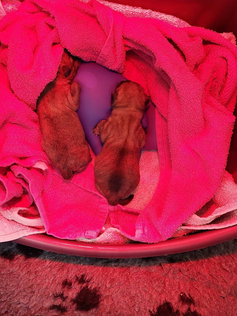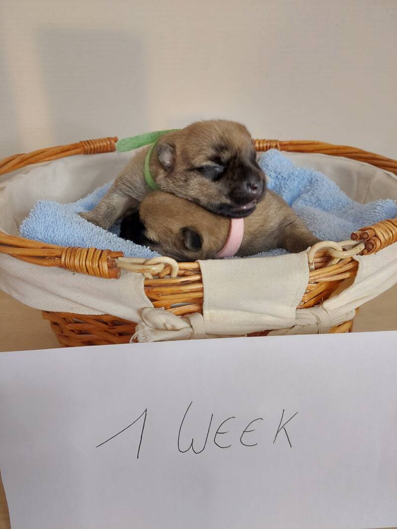 30/09 Puppy´s zijn nu 1 week oud. Ze oefen hun stemmetjes, eten goed en wegen elk al 410gr.