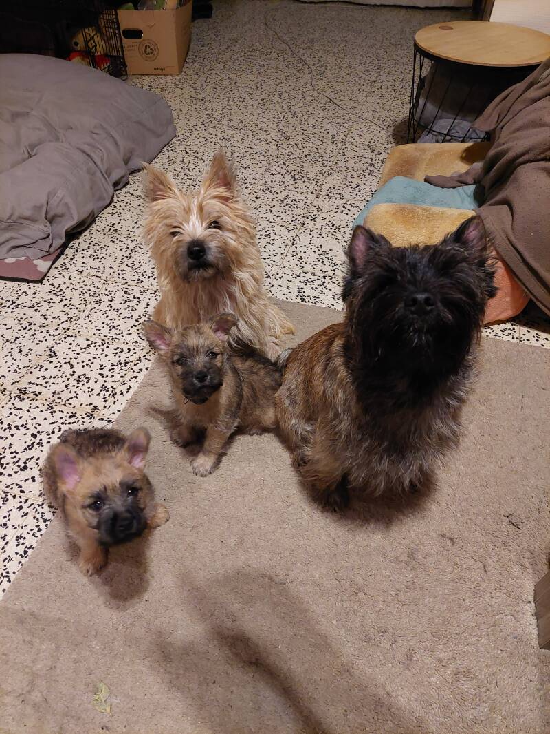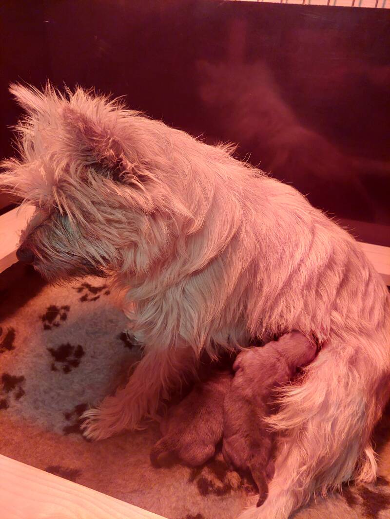 24/09 Noortje doet het goed. De pups zijn al 40gr aangekomen. Ze kruipen goed rond en Noortje geeft ze alle aandacht en voeding die ze nodig hebben.